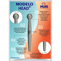 Com o MODELO HEAD© você poderá trabalhar com maior precisão e eficácia os pontos médios, e também grandes áreas com a ponta maior. Esse formato possibilita trabalhar essas áreas maiores de forma mais eficiente. O MODELO HEAD© possui 2 pontas com dimensões e formatos diferentes para estimular de forma apropriada também alguns pontos maiores. Foi desenvolvido com ergonomia para lhe proporcionar menor fadiga e com o peso ideal para reduzir o seu esforço na hora de realizar os estímulos.