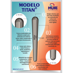 Com o MODELO TITAN© é muito confortável para trabalhar áreas e pontos maiores. Possui 2 pontas com dimensões e formatos diferentes também, e seu design torna muito confortável e ergonômico tanto para o terapeuta quanto para o paciente. Sua ergonomia lhe proporciona menor fadiga e seu peso auxilia para reduzir o seu esforço na hora de realizar os estímulos.