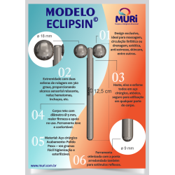 Com o MASSAGEADOR ECLIPSIN© é excelente para trabalhar diversas técnicas de massagem e relaxamento. Por exemplo, na reflexologia ele pode ser usado para trabalhar o sistema linfático. Pode ser usado também para trabalhar a reflexologia facial, massagear diversas áreas da planta do pé, tornozelo, musculatura das pernas, etc. Também tem sido usado muito para fins estéticos, massagear e reduzir olheiras e manchas na pele. Por se de aço cirúrgico, ele pode ser resfriado ou aquecido para trabalhar lesões e dores. Possui uma das pontas anatomia para trabalhar como ponteiro para estimular pontos. Possui um eixo deslizante com ajuste preciso, o que proporciona firmeza e conforto na hora de utilizá-lo. Além disso, ele é muito leve e ergonômico para o terapeuta.