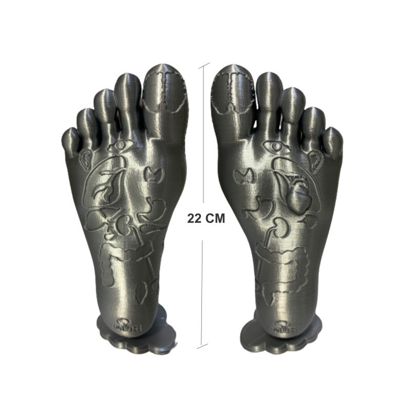 PÉ DIREITO E ESQUERDO 22CM COM OS PRINCIPAIS ÓRGÃOS CONFORME MAPA DA REFLEXOLOGIA.
