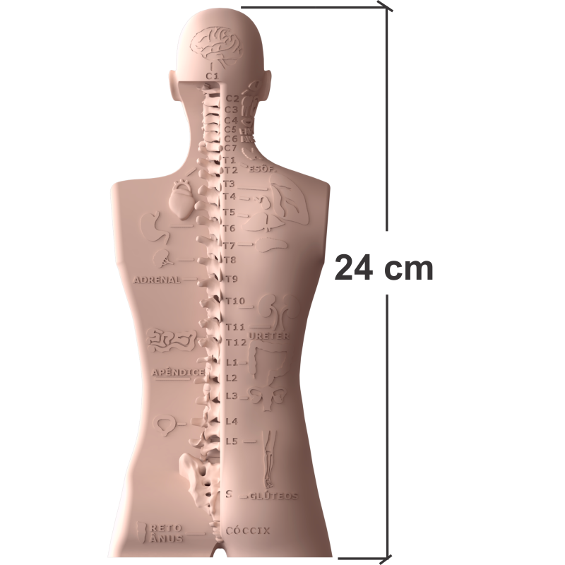 A COLUNA MURi 3D CONTÉM EM ALTO E BAIXO RELEVO, A REPRESENTAÇÃO DAS LIGAÇÕES NERVOSAS ENTRE AS VÉRTEBRAS E OS ÓRGÃOS.