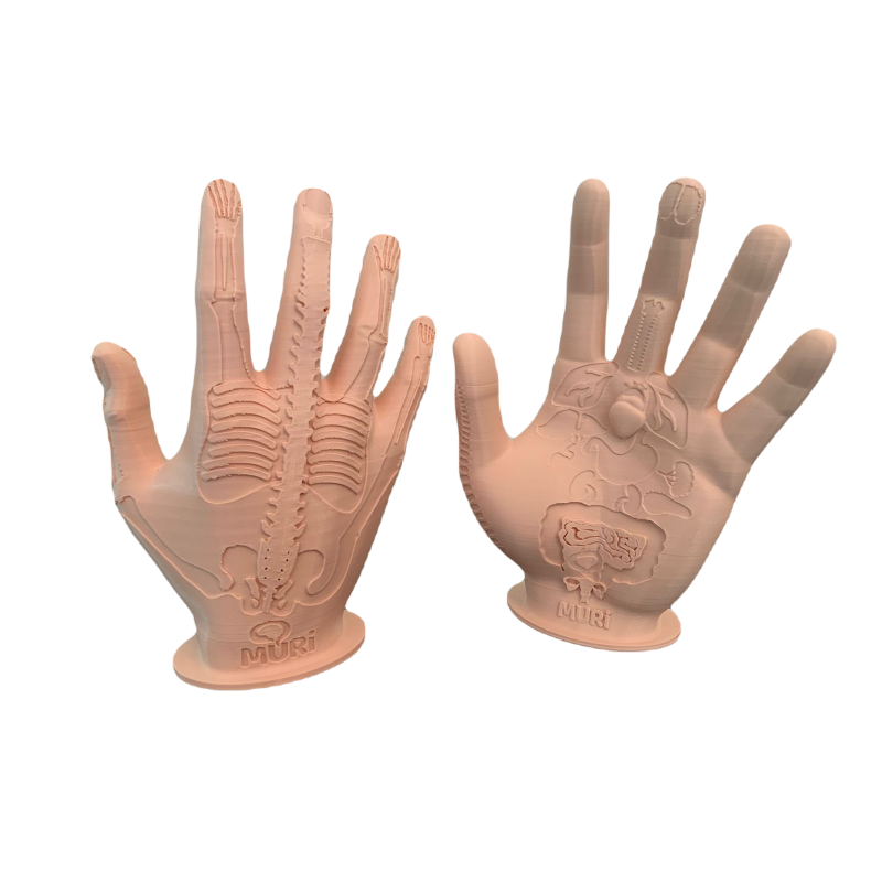 MÃO ESQUERDA E DIREITA COM 20CM COM OS PRINCIPAIS ÓRGÃOS CONFORME MAPA DA REFLEXOLOGIA E KORYO SOOJI.